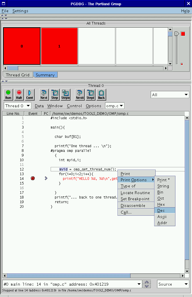 PGI 伺服器生成的可執行程式限制 OpenMP 或自動並行程式使用的線程數。該數位最大值等於