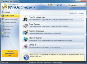 和修正,包括碎片整理等,保證了系統總是使用方便。Ashampoo WinOptimizer