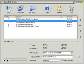 Easy DVD Creator 能把主流的視頻格式檔轉換為DVD鏡像檔,例如AVI/DIVX/XVID/
